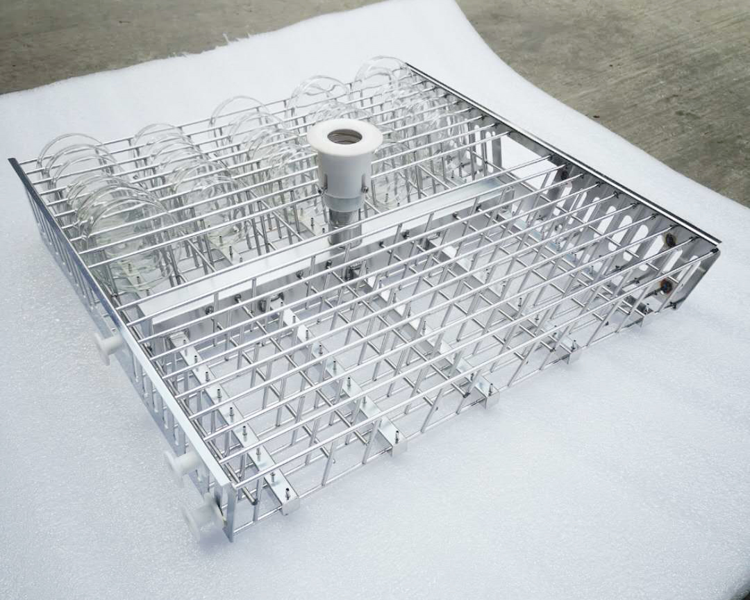 器皿直接放置在籃框內(nèi)。培養(yǎng)皿清洗籃架通過噴針全方位噴射水柱沖洗器皿。針對(duì)直徑為90mm的培養(yǎng)皿,一層籃架可放置約90個(gè),兩層約放置180個(gè)。